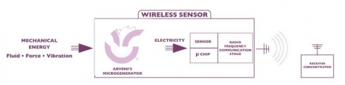 Soutenue par la Région Rhône Alpes et l’École d’ingénierie de l’INSA, la start-up française Arveni commercialise une gamme de micro générateurs électrique. Ces générateurs transforment l’énergie mécanique ambiante, par exemple des vibrations ou la pression d’un doigt en électricité via un capteur piézoélectrique.